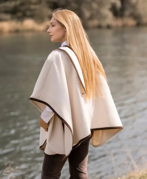 Poncho Crème avec Bordure en Daim